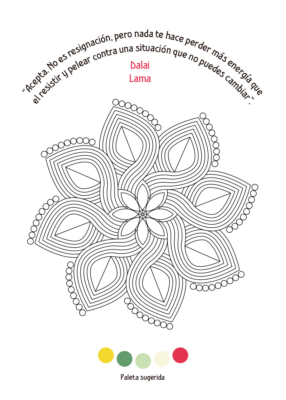 Este libro incluye 16 diseños para colorear, con paletas de color para tener como inspiración y frases para leer y reflexionar mientras le dedicamos un tiempo a relajarnos y disfrutar de la actividad.